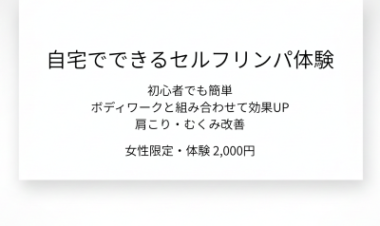 セルフリンパ体験、セルフリンパケア認定講座は随時開催中です。